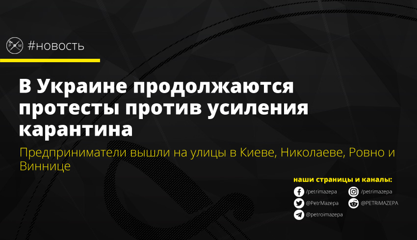 В Украине продолжают протестовать против введения карантина выходного дня. В Киеве, Николаеве, Ровно Виннице вышли на протест предприниматели.
