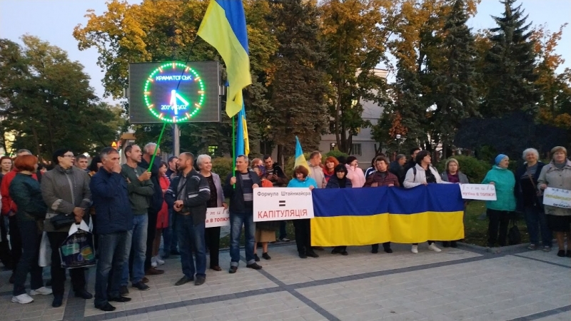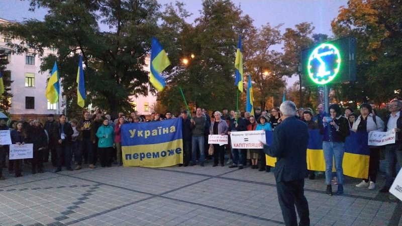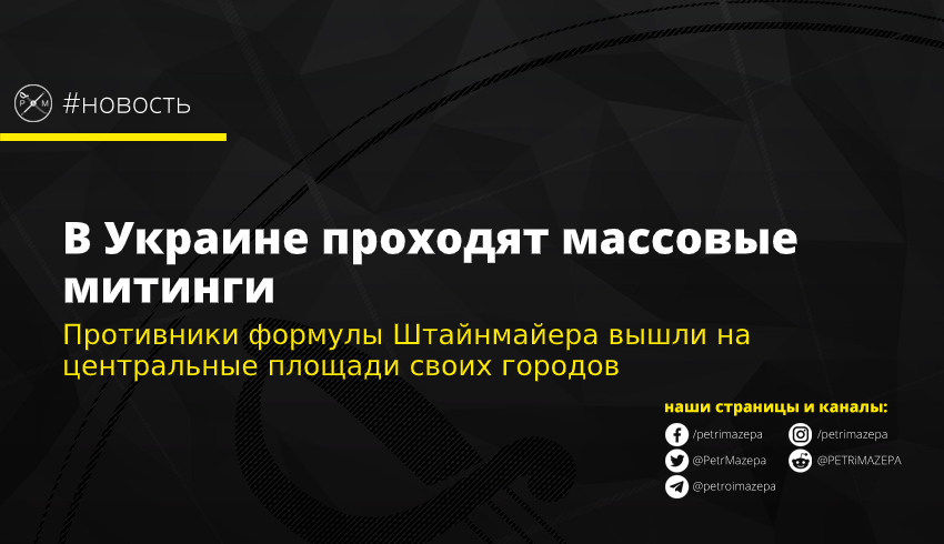 В Украине проходит массовые митинги против формулы Штайнмайера. Люди вышли в Киеве, Харькове, Львове, Запорожье, Одессе, Краматорске и не только. На акциях много украинской символики. Кроме того звучат призывы к Зеленскому уйти в отставку