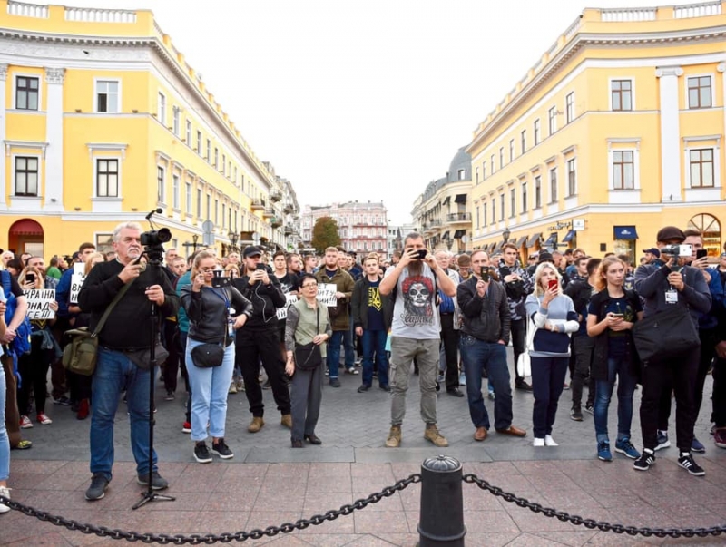 В Одессе люди собрались возле Дюка. Людей было пару сотен, лозунги похожие. Стоит отметить даже появление мерча - футболки "Зе Зрада" у одной из одесситок