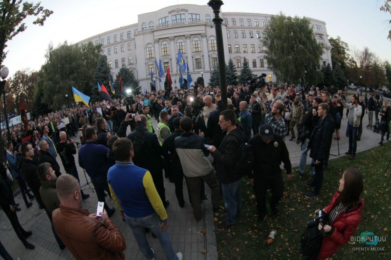 В Днепре под ОГА собрались представители националистических организаций "Правый Сектор" и "Свобода" с партийными флагами. Около 200-300 человек провели небольшую акцию и разошлись по домам.