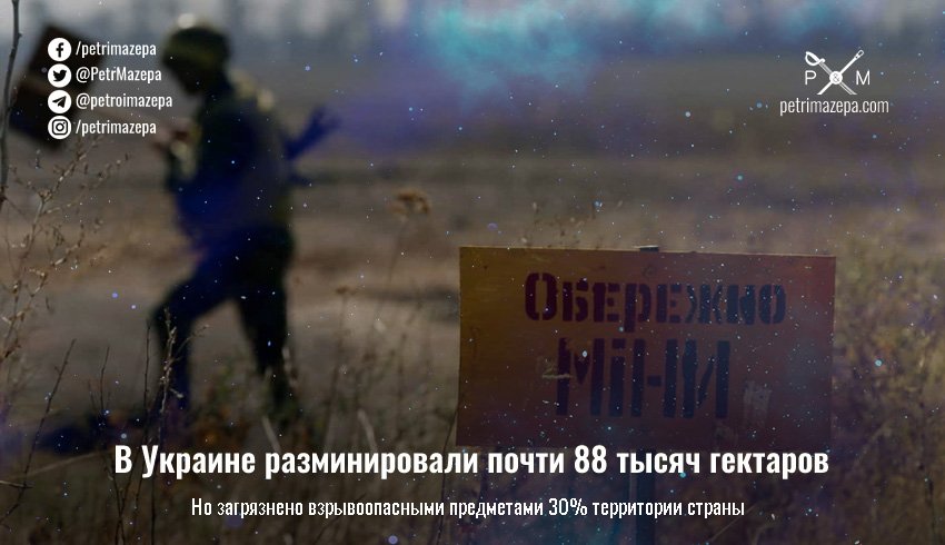 В настоящее время силы Государственной службы по чрезвычайным ситуациям (ГСЧС) разминировали почти 88 тысяч гектаров (880 кв. км) территории Украины. Но работы впереди еще много.