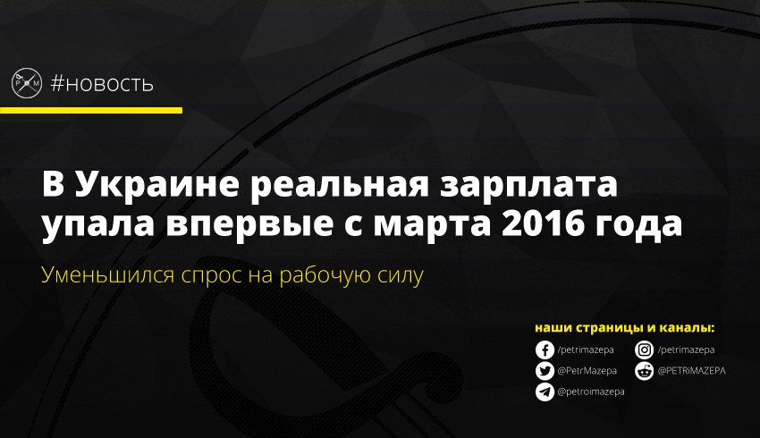 В Украине реальная зарплата упала впервые с марта 2016 года