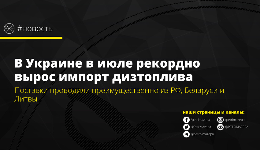 В июле текущего года импорт дизельного топлива в Украину вырос на 19,8% (по отношению к уровню поставок в июле прошлого года) и составил 658 500 тонн. При этом, по сравнению с объемом импорта дизтоплива в июне 2019 года, в июле прирост составил 45%. Учитывая производство дизтоплива в Украине, баланс рынка дизтоплива в июле 2019 года превышает 700 000 тонн. За последние пять лет максимальное месячное наполнение рынка было в октябре 2018 года. Тогда этот показатель достигал 684 600 тонн.