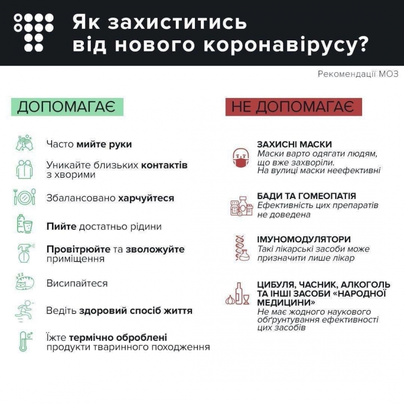 На сайте «Коронавирус в Украине» содержится информация о том, что такое коронавирус, как он передается, как избежать болезни, а также ситуация в Украине в целом. Также на сайте указано, что в группе риска находятся пожилые люди; медработники; люди, которые контактировали или находились в закрытом помещении с больными.