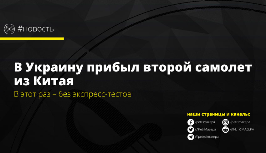 Второй самолет из Китая приземлился в аэропорту Борисполь, сообщил замглавы ОПУ Кирилл Тимошенко. В этот раз нам привезли респираторы, защитные костюмы, медицинские маски и «другие средства защиты». О доставке дополнительных экспресс-тестов не сообщается, однако по словам Тимошенко Украина ожидает ночью еще 100 тысяч ПЦР-тестов из тех 10 млн, которые обещал нам президент.