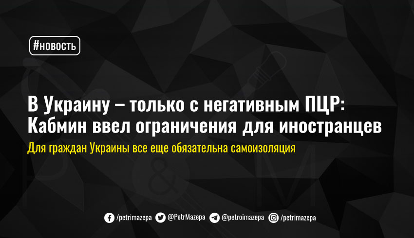 Кабинет министров ввел ограничения на въезд в Украину для иностранцев – теперь пересечение границы возможно только при наличии негативного результата ПЦР-теста на COVID-19.