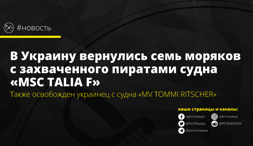В Украину вернулись семь моряков с захваченного пиратами судна «MSC TALIA F»