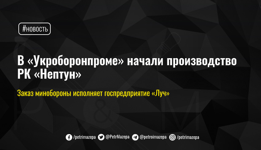 Госпредприятие «Луч», входящее в состав «Укроборонпрома», начало производство ракетных комплексов «Нептун» по заказу Минобороны. Контракт на поставку РК был подписан в конце прошлого года.
