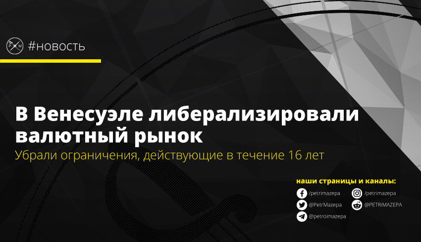 Венесуэла с опозданием постепенно отказывается от сложной сети мер финансового контроля в стране, где отмечается гиперинфляция и серьезный экономический спад. Теперь частные лица и компании в стране смогут покупать и продавать иностранную валюту в банках страны. При этом средний курс по итогам каждого дня будет публиковаться как официальный, передает «Интерфакс-Украина».