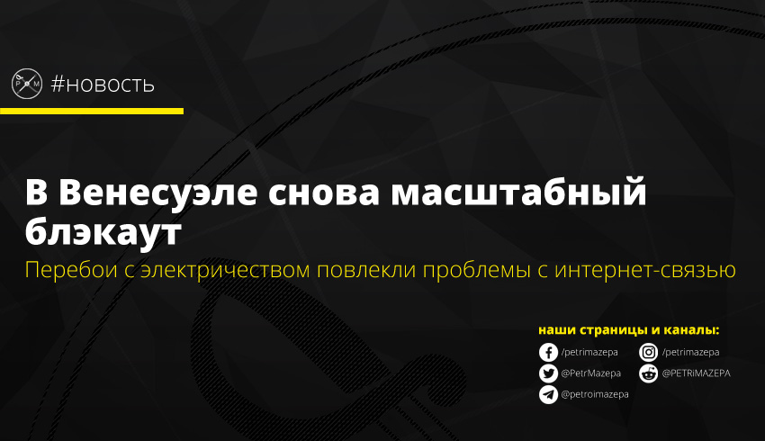 Большая часть Венесуэлы ощутила проблемы с электроэнергией. На севере и западе страны зафиксированы масштабные перебои в энергоснабжении. На фоне этого, проблемы возникли и с доступом к интернету.