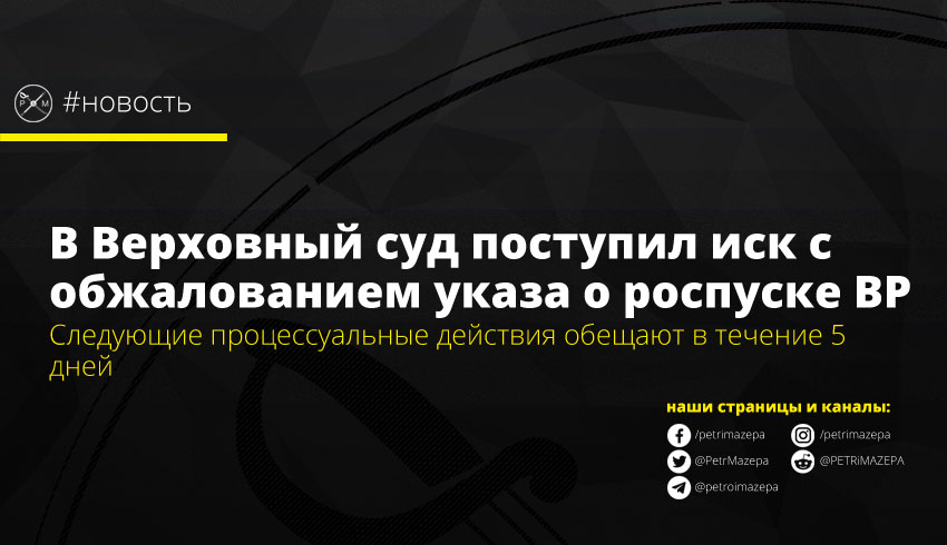 В Верховный суд поступил иск с обжалованием указа о роспуске ВР