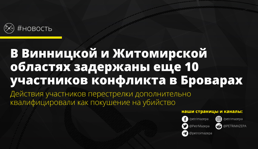 В Житомирской и Винницкой областях правоохранители задержали еще 10 участников разборок в Броварах, сообщает департамент коммуникации Министерства внутренних дел Украины. Таким образом, общее количество задержанных достигло уже 21-го.