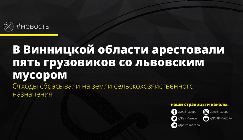 В Винницкой области ночью полицейские выявили незаконное загрязнение земель сельскохозяйственного назначения – туда сваливали бытовые отходы на протяжении как минимум двух недель, а сверху присыпали землей для сокрытия правонарушения. Пять грузовиков из Львовской области, которые ночью привезли на этот участок мусор и были готовы его разгрузить, арестованы.