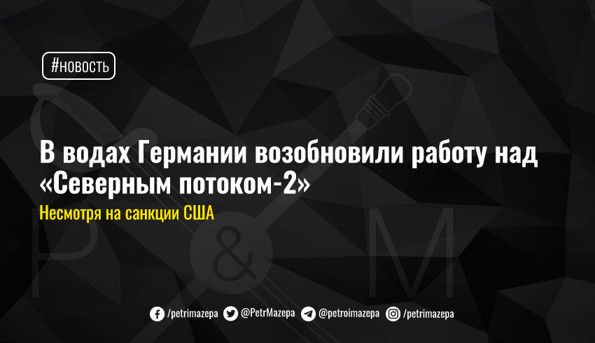 В водах Германии возобновилась работа по прокладке российского газопровода «Северный поток-2», ранее остановленная из-за протестов экологов.