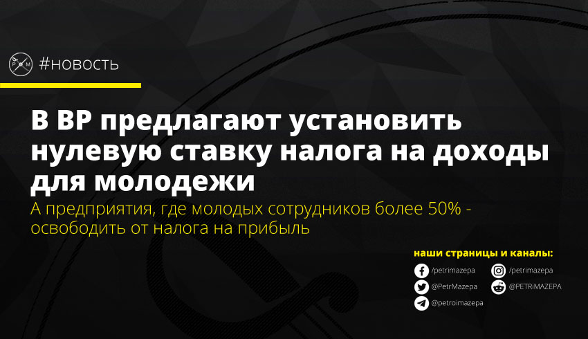 Комитет Верховной рады поддержал законопроект №2250-1 «О внесении изменений в Налоговый кодекс Украины относительно содействия трудоустройству молодых специалистов и внутренне перемещенных лиц, приостановлению оттока украинских специалистов за границу». Этим законопроектом предлагается освободить от налога на доходы физлиц-налогоплательщиков младше 27 лет, а предприятия, где работает более 50% ВПЛ или людей младше 27 лет освободить от налога на прибыль.
