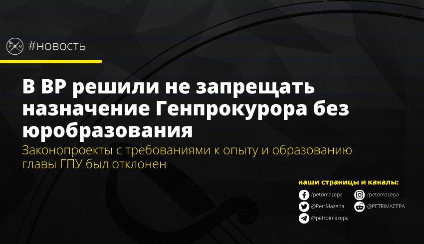 Верховная рада отказалась запрещать назначение генеральным прокурором лица без юридического образования и опыта работы в области права. Нардепы большинством голосов отклонили оба законопроекта, которыми предлагалось вернуть соответствующие требования.