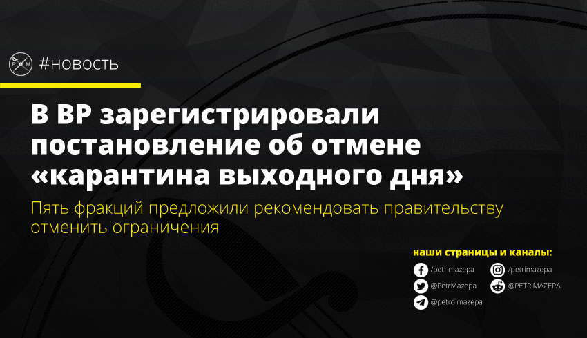 В ВР зарегистрировали постановление об отмене «карантина выходного дня»