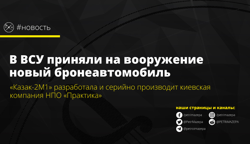 На вооружение ВСУ принят бронированный автомобиль «Казак-2М1», который разработала и серийно производит киевская компания НПО «Практика». «Казак-2М1» соответствует НАТОвским стандартам STANAG 4569 level 2 для защиты от стрелкового оружия и level 3а по противоминной защите.