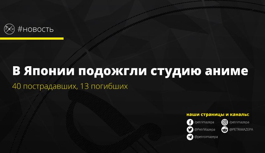 В Японии мужчина поджег студию аниме Kyoto Animation Co. В результате случившегося погибли по меньшей мере 13 человек. Десятки раненых. Что стало мотивом злоумышленника пока что остается неизвестным.