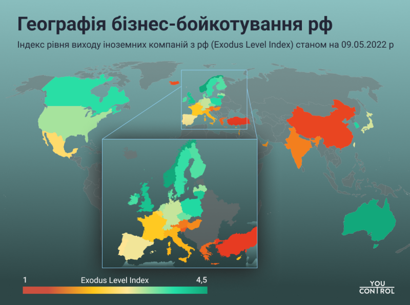 В YouControl показали стран-лидеров и аутсайдеров бизнес-бойкота агрессора
