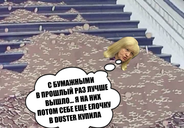 Причиной перформанса послужил раздвоение личности госпожи Гальчинской. Пока её внутренний Джекил получал в прошлом году матпомощь в качестве малоимущей на лечение, внутренний Хайд купил авто Renault Duster за 416 тысяч гривен. А потом у Гальчинской так вовремя случился провал в памяти, что она автомобиль забыла в декларацию внести.