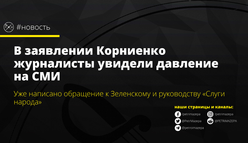От руководства фракции партии «Слуга народа» и президента Украины требуют дать оценку и осудить позицию господина Корниенко и провести соответствующую работу среди представителей фракции партии «Слуга народа» для недопущения любых высказываний или действий, направленных на ограничение деятельности независимых СМИ в Украине. А со своими проститутками пусть чатятся в нерабочее время.