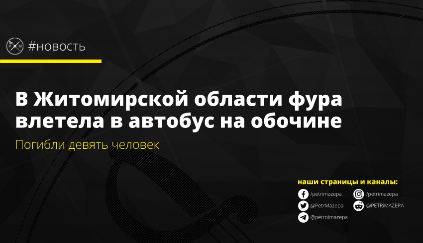 В селе Пилиповичи Житомирской области произошло столкновение грузового автомобиля с автобусом. В результате случившегося погибли девять человек и 10 – пострадали. Водителя грузовика задержали.