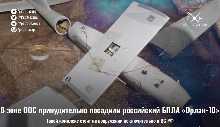 «"Орлан-10" производит российское ООО "Специальный технологический центр" в Санкт-Петербурге и этот комплекс стоит исключительно на вооружении ВС Российской Федерации. Крылатый трофей является безоговорочным доказательством и документальным подтверждением присутствия российских войск, вооружения и техники на территории Украины», - сообщают в штабе ООС.