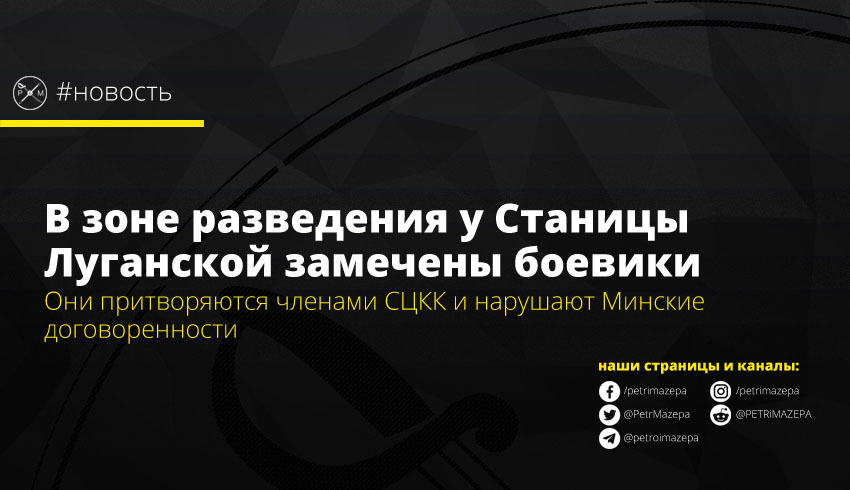 На участке разведения сил и средств в Станице Луганской представители совместного центра по контролю и координации вопросов прекращения огня (СЦКК) отметили нахождение представителей вооруженных формирований. Они носят символику, которая похожа на символику СЦКК, но официально в Центре не используется, а их нахождение в зоне разведения нарушает Минские договоренности.