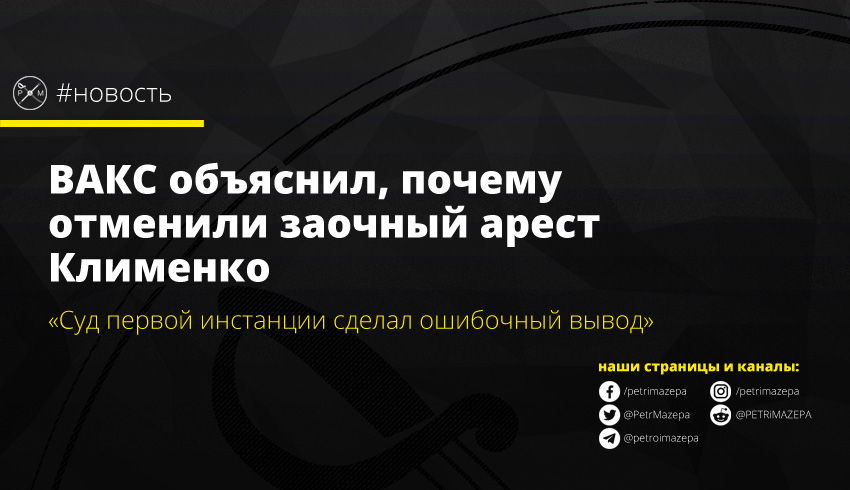 ВАКС объяснил, почему отменили заочный арест Клименко