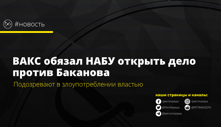Высший антикоррупционный суд обязал Национальное антикоррупционное бюро открыть уголовное производство против главы СБУ Ивана Баканова по факту возможного злоупотребления властью и ряда других уголовных правонарушений, сообщают Українські новини.