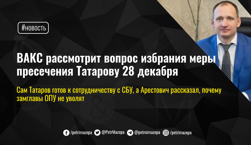 ВАКС рассмотрит вопрос избрания меры пресечения Татарову 28 декабря