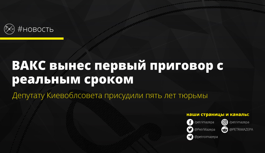 15 июня Высший антикоррупционный суд (ВАКС) признал виновным депутата Киевского облсовета в злоупотреблении влиянием. Александра Мефодия приговорили к пяти годам лишения свободы.