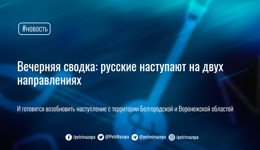 На Харьковском и Славянском направлениях русские удерживают занятые позиции и минируют маршруты возможного выдвижения подразделений ВСУ. Была попытка наступления на Богородичное, но безуспешная.