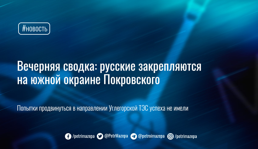 Вечерняя сводка: русские закрепляются на южной окраине Покровского