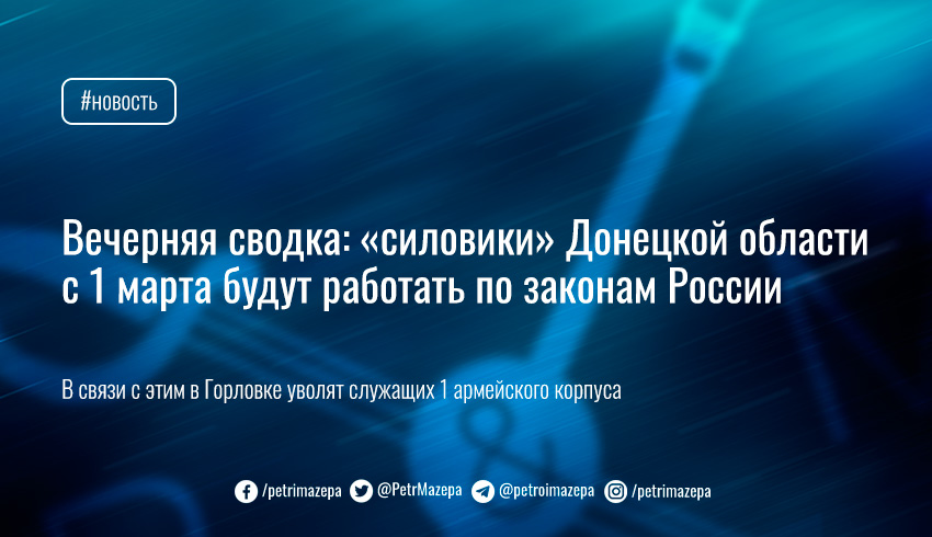 Вечерняя сводка: «силовики» Донецкой области с 1 марта будут работать по законам России