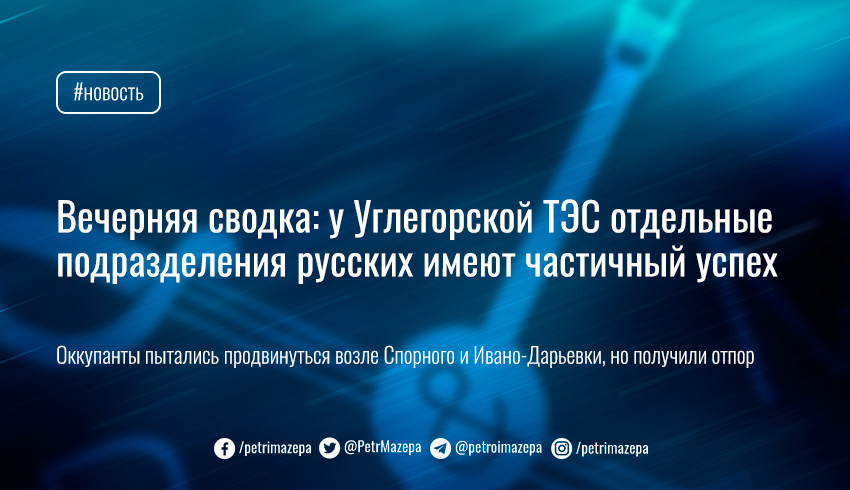 Вечерняя сводка: у Углегорской ТЭС отдельные подразделения русских имеют частичный успех