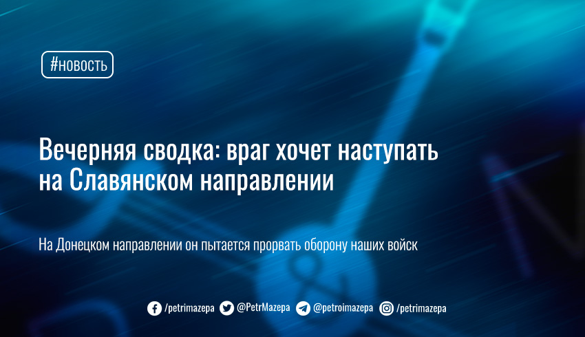 Вечерняя сводка: враг хочет наступать на Славянском направлении