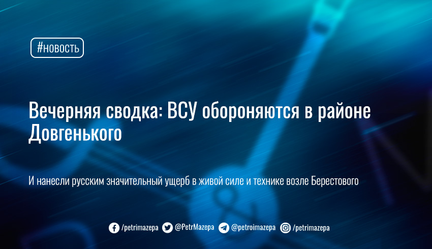 Вечерняя сводка: ВСУ обороняются в районе Довгенького