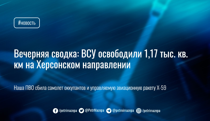 Вечерняя сводка: ВСУ освободили 1,17 тыс. кв. км на Херсонском направлении