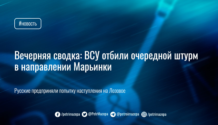 Вечерняя сводка: ВСУ отбили очередной штурм в направлении Марьинки