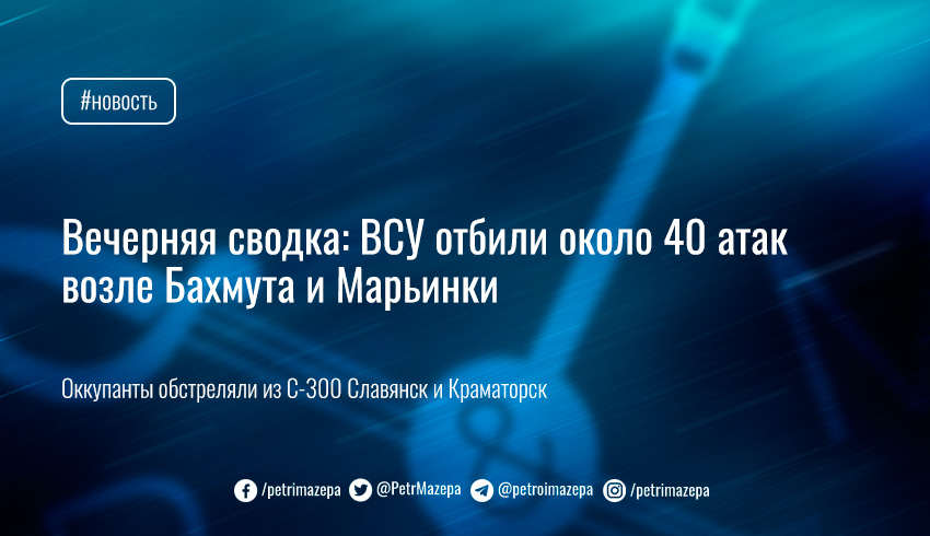 Вечерняя сводка: ВСУ отбили около 40 атак возле Бахмута и Марьинки
