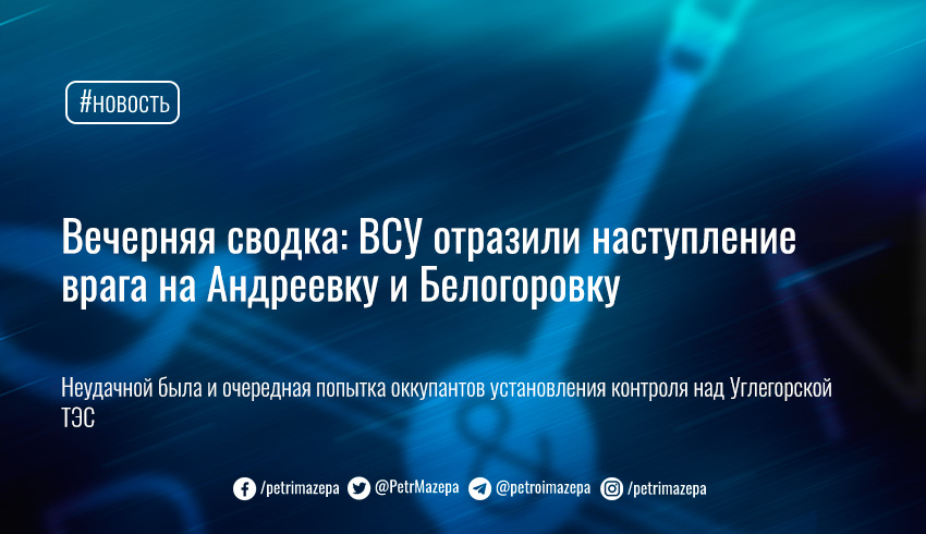 Вечерняя сводка: ВСУ отразили наступление врага на Андреевку и Белогоровку