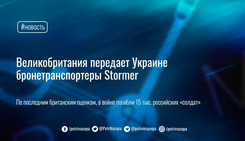 Министр обороны Бен Уоллес в Палате общин отметил, что Украина получит Stormer, поскольку президенту России Владимиру Путину нельзя позволить взять верх.