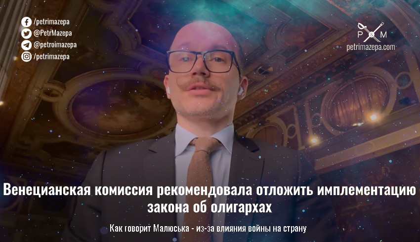 Европейская комиссия «За демократию через право» (Венецианская комиссия) рекомендовала Украине отложить имплементацию закона об олигархах из-за войны.