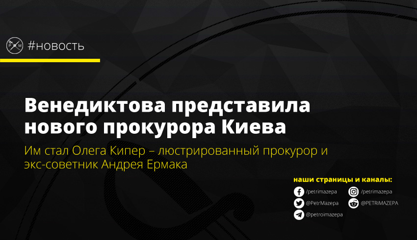 Генеральный прокурор Ирина Венедиктова представила коллективу прокуратуры города Киева нового руководителя. Им стал ранее занимавший должность заместителя прокурора Киева Олег Кипер.