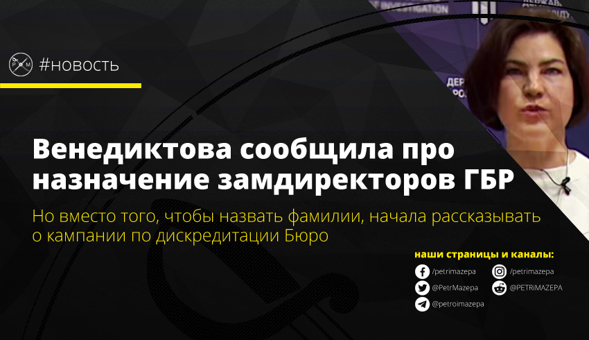 Пресс-служба Государственного Бюро расследований опубликовала видеообращение и.о. директора ГБР Ирины Венедиктовой, в котором она рассказала о подписанных приказах о назначении заместителей директора Бюро. Но фамилиям место в ролике не нашлось, поскольку большая часть видео была посвящена рассказам о том, как различные кланы пытаются устраивать информационные атаки на ГБР и что у них ничего не выйдет.