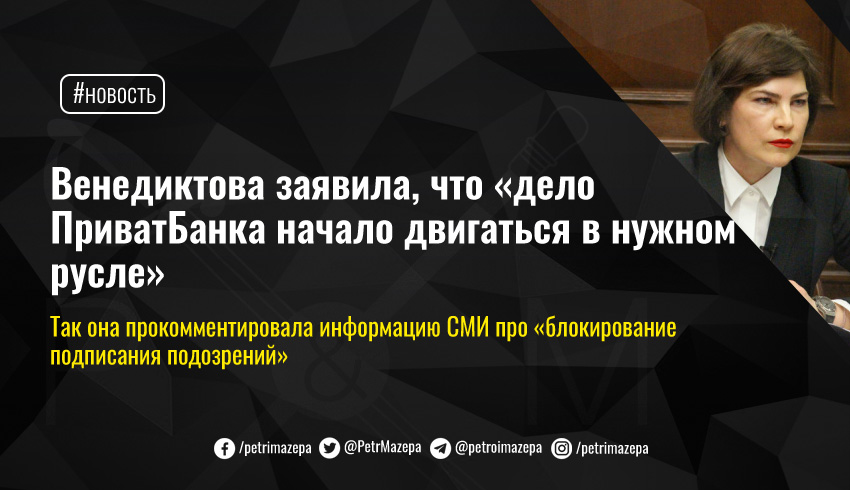 Сегодня днем «Экономическая правда», сообщила про затягивание генпрокурором Ириной Венедиктовой процесса подписаний подозрений по делу Приватбанка о выводе бывшими собственниками средств из банка. Сама Венедиктова выступил опровержением и сообщила, что дело движется «в нужном русле».