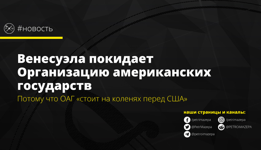 В апреле 2017 года официальный Каракас подал заявку о выходе из ОАГ. Тогда министр иностранных дел Венесуэлы Делси Родригес заявила, что процедура выхода займет два года. В нынешнем заявлении Министерства иностранных дел Венесуэлы сообщается, что выход Венесуэлы из Организации должен состояться 27 апреля. При этом отмечается, что страна не может оставаться в организации, которая «стоит на коленях перед имперскими интересами администрации США».