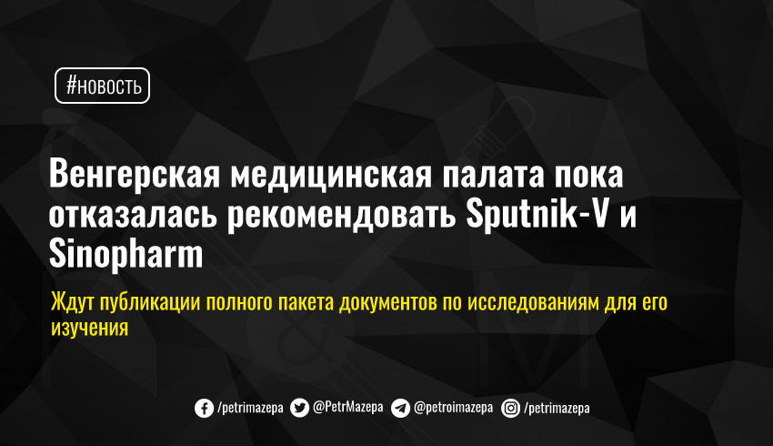 Венгерская медицинская палата пока отказалась рекомендовать Sputnik-V и Sinopharm